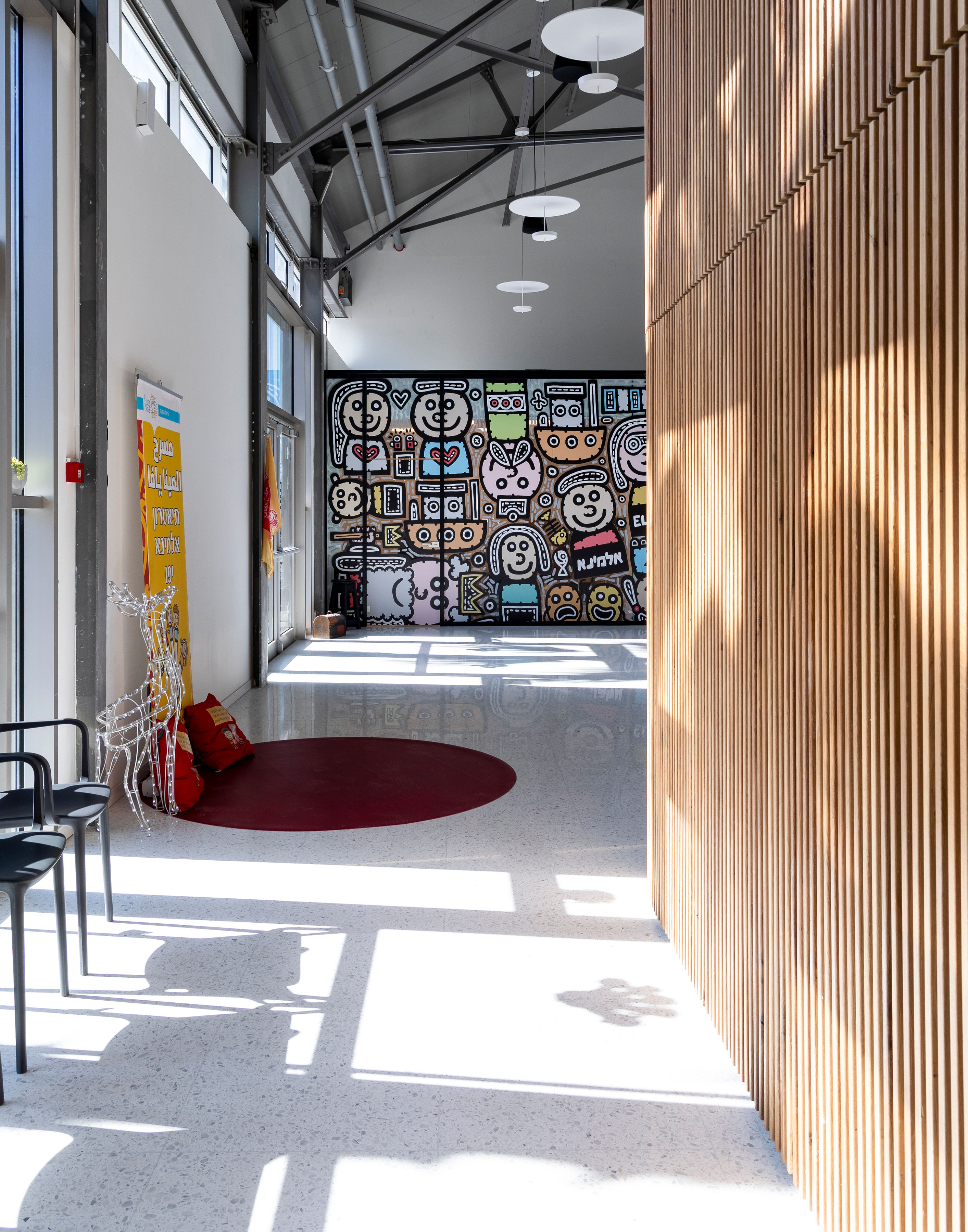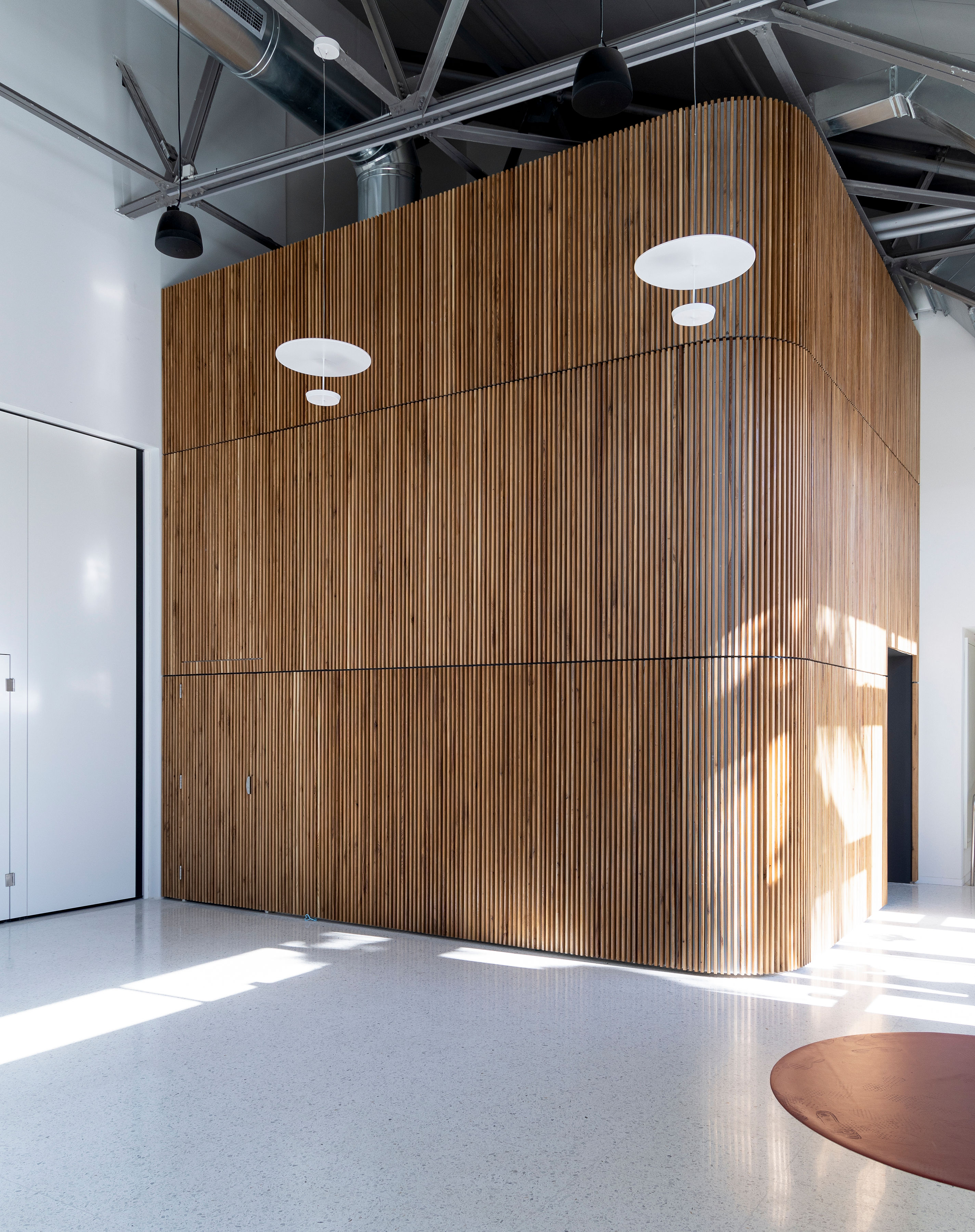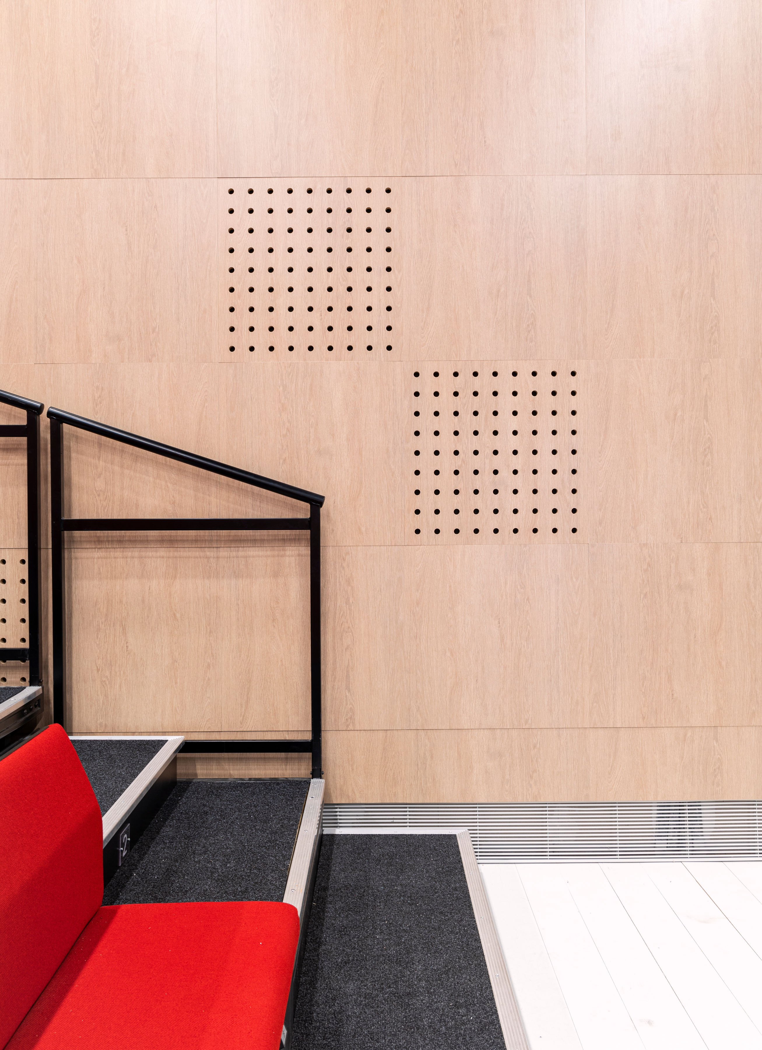 בפרויקט ביצענו את עבודות הנגרות והחיפויים האקוסטיים מעץ בחירור מיקרו-ננו, וחירור דקורטיבי, בגמר CPL דגם אלון מתוצרת חברת